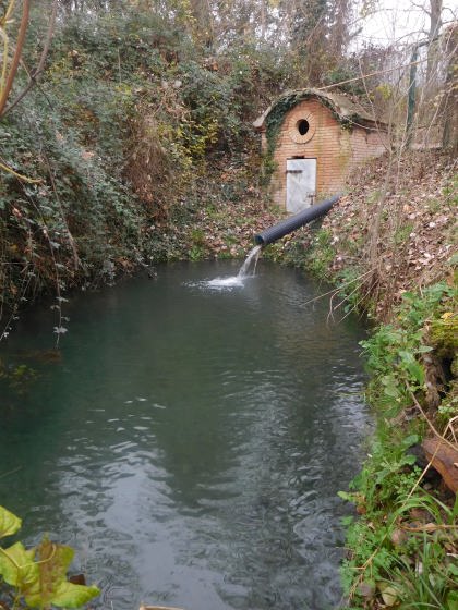 en moltes ocasions surt de la font, un desguàs per subterrani la porta a una bassa de rec que serveis per regar camps i horts de la zona.