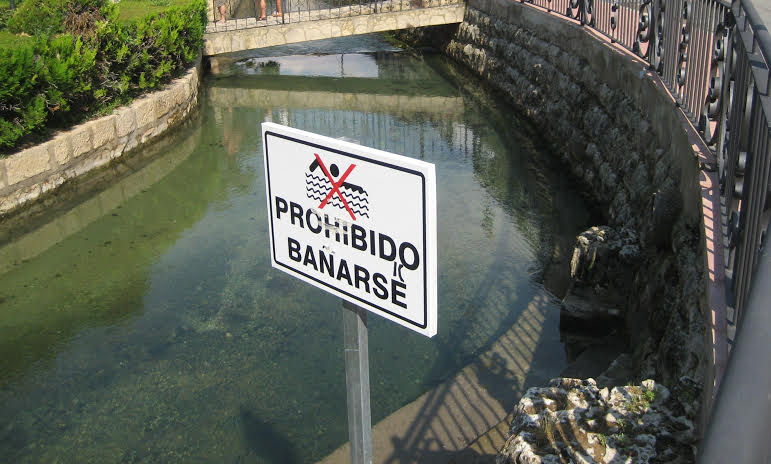 El manantial de los “Ojos de Monreal” corresponde a un conjunto de oquedades circulares de unos 3 metros de profundidad, unidas por canales, de las que surge un caudal de agua muy superior al que habitualmente lleva el río en la zona.
