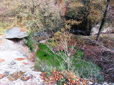 Si es continua el recorregut que hi ha a l’entorn de les Coves del Toll s’arriba a la Surgència.