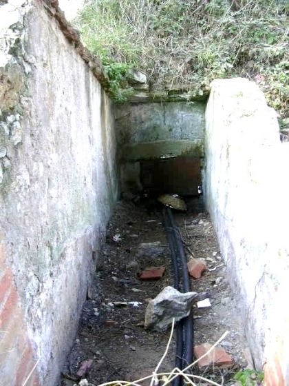 Del frontal en surt un tub de ferro que dóna un bon raig. I cau a la pica que està al nivell del terra, en surt una canaleta que porta l’aigua a l’altre costat de la pista tot fent sigues sagues fins al torrent.