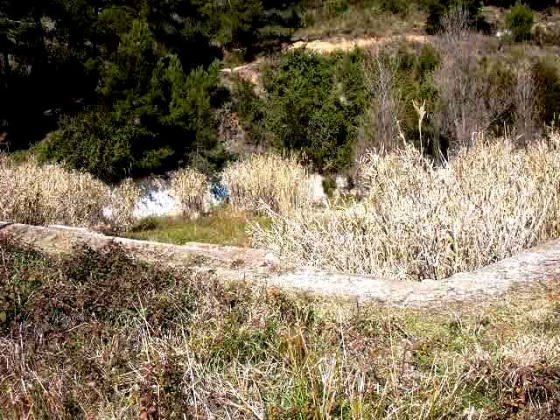 Al planell que hi ha per sobre de la font trobarem unes taules i bancs de fusta per poder fer un àpat i les restes d’una construcció antiga.