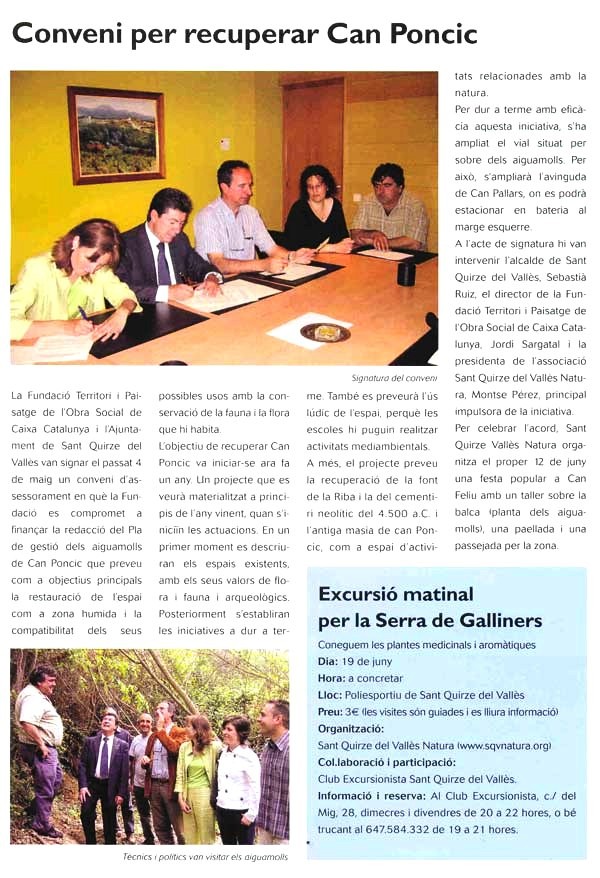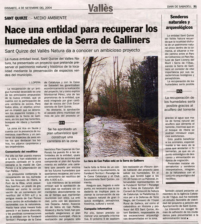 Un grup d’entusiastes i voluntaris d’aquesta població ara fa mes de deu anys van unir-se creant l’Associació Sant Quirze del Vallès Natura.