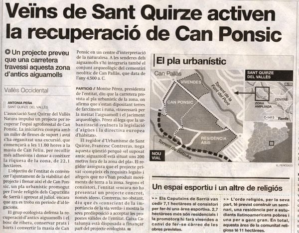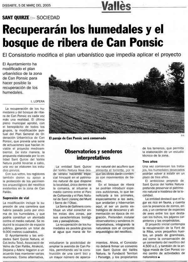 Per diversos motius van desaparèixer “Els Aiguamolls de Can Ponsic” en el torrent de la Betzuca, en el municipi de Sant Quirze del Vallès, a peu de la Serra de Galliners.