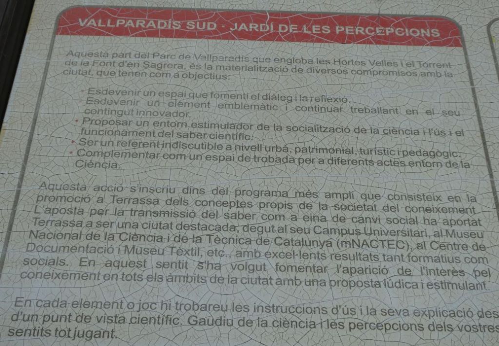El Jardí de les Percepcions, el primer museu científic a l’aire lliure de l’Estat espanyol, amb escultures de Marc Boada on els ciutadans poden tocar, olorar i experimentar amb l’ús dels cinc sentits.