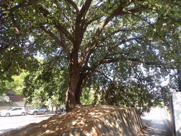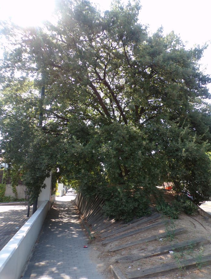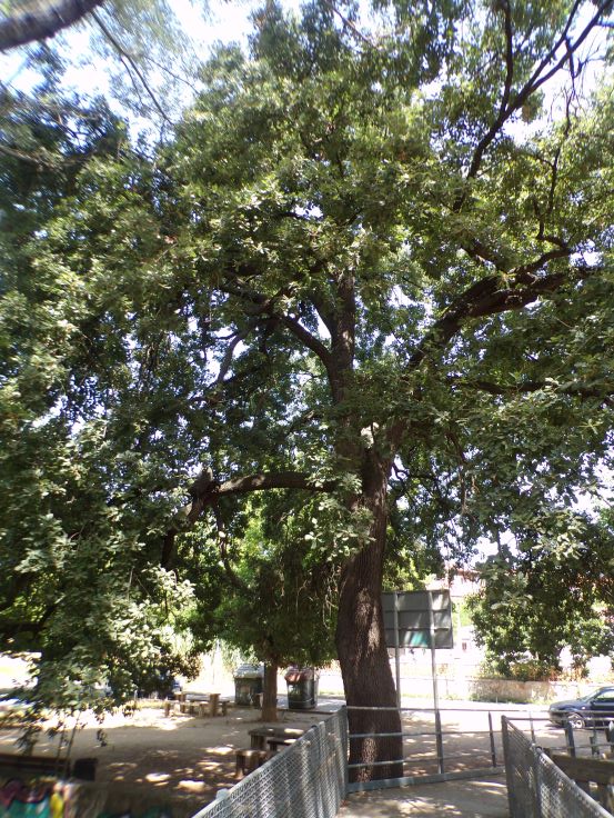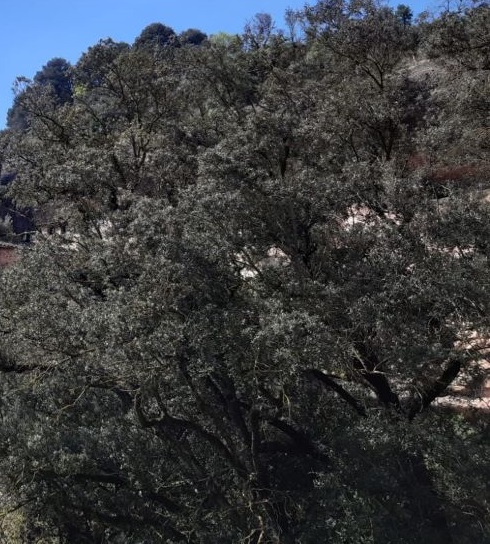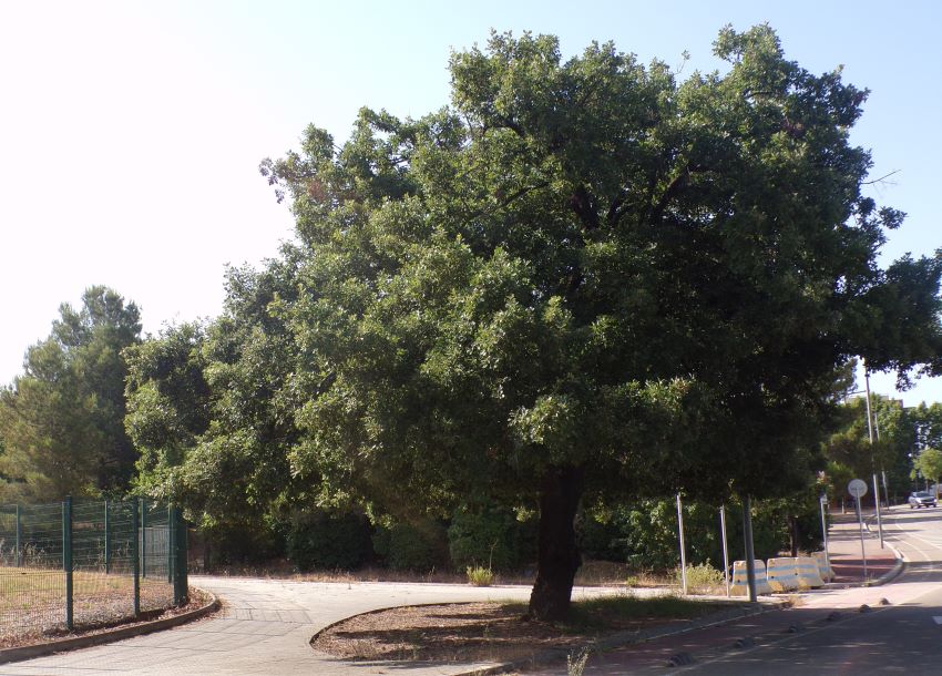 Es tracta d’un exemplar de Quercus x cerrioide que l’any 2017 tenia una alçada d’11 metres