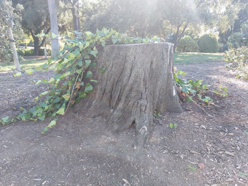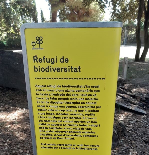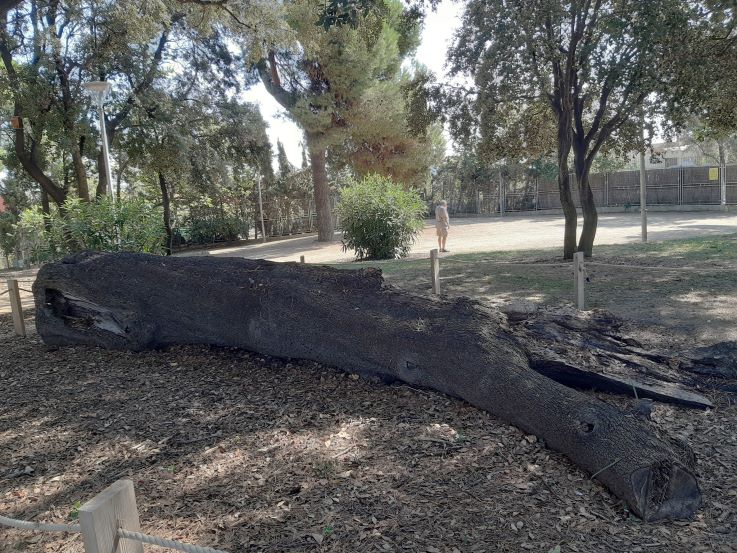 Aquest tronc forma part de la Biodiversitat del Parc, on habitant insectes i petit animals.
