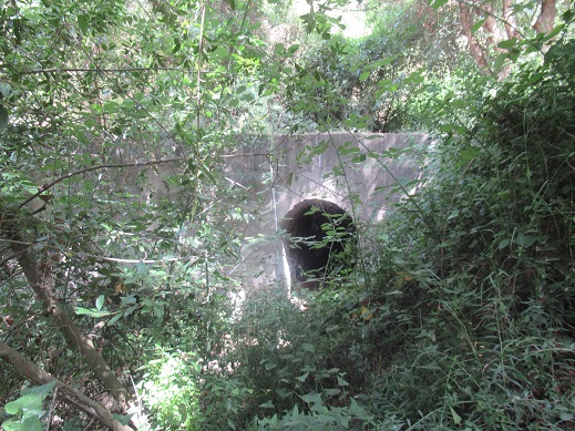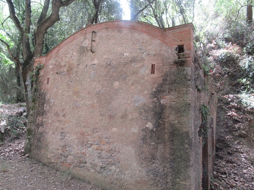 Al bell mig del torrent, a escassa distància de l’edifici, hi ha un mur bastit en maons que fa les funcions de resclosa.