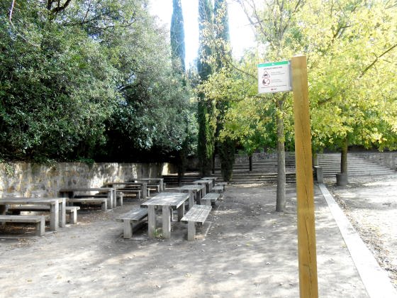 A la llarga d’aquest passeig que remunta molt suaument el torrent, trobareu a la vostra esquerra, tres placetes amb seients semi circulars de pedra.