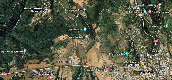 Per anar al Bassal Roig, us caldrà que sortiu de Moià per la Carretera N- 141c direcció Manresa, la deixareu aviat tot anant per la dreta per una bona pista que porta a la masia “caseta d’en Fermí”, on en el turó hi ha el Castell i l’ermita de Sant Andreu de Clarà,