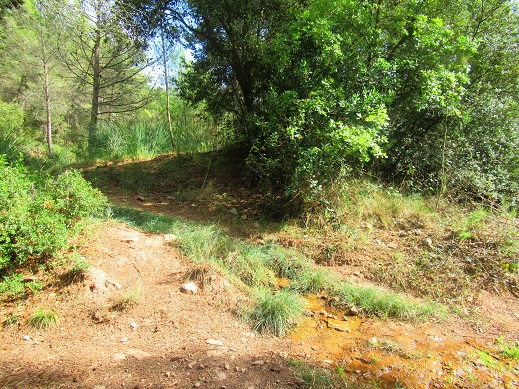 A la part dreta hi ha un desguàs que surt l’aigua i es perd pel bosc.