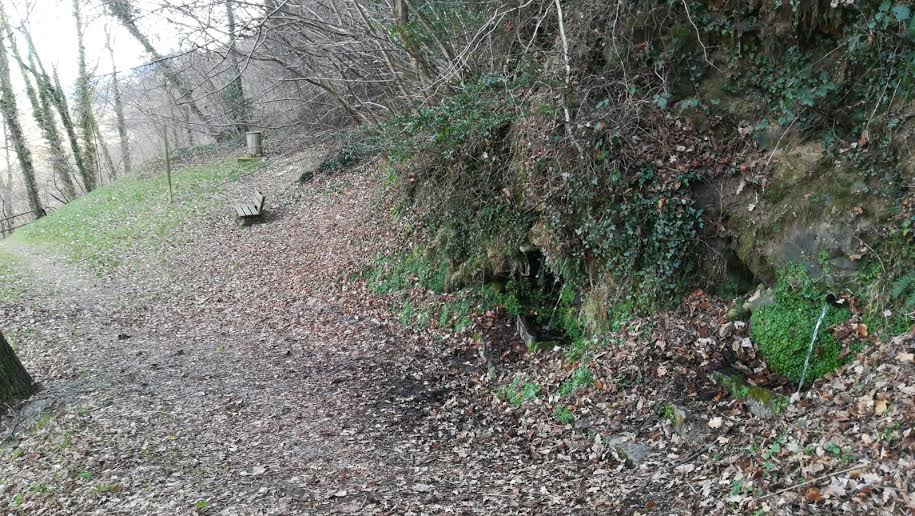 Aquesta Font del Raïm esta situada casi entre els límits municipals de Llanars i Vilallonga de Ter, un cartell així ens ho fa constar.