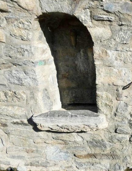 En un costat, veureu un oratori com si fora una caseta i és de fusta, amb la Mare de Déu del Raïm a dins seu, tancada i protegida per una reixa.