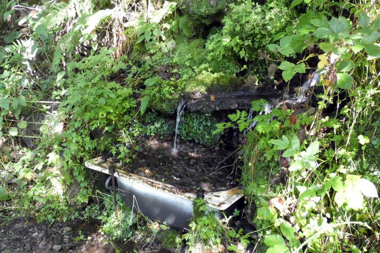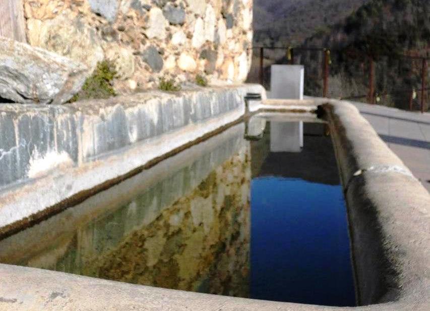 l’aigua surt d’un ample broc, també de pedra, es curiós per la inclinació molt marcada,